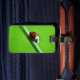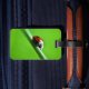 Ladybug-makrofoto på en tydlig grönt-bakgrund. Cute ladybird på gräs. Perfekt, skingerpresenter och utskrifter till ditt hem!