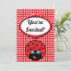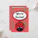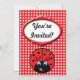 Nyckelpiga med stor tecknad för rött och svart polka, klumpantenn och slickande hennes leende läppar är en roligt, en munter inbjudan till nästa födelsedag, årsdag eller andra party firande. Anpassa den här inbjudan med egna uppgifter till kostym oavsett tillfälle!
