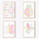 A combination of soft, quilt inspired designs, and a ladybug creates this cute, bedroom, wall decor art print. The background is white, while the ladybug consists of white with light shades of green, yellow, and pink. This art print features a signature by me, the artist.