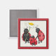 Kute, vismisk konst med mamma, pappa och baby ladybug ute för en promenad i trädgården. Fru Ladybug har ett paraply för daisy blomma.