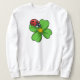 Vibrant clover leaf with a playful red ladybug, vintage textured print, bright greens and speckled shading for a handcrafted feel—perfect for nature lovers and spring vibes.