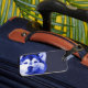 Låg Poly konst för siberian husky i blått Bagagebricka