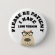 Cute illustration av en Labrador Retriever med glasögon. Denna ras används ofta av personer som är blinder eller synskadade. Kurvtext ovanför hundarnas huvud lyder: "Var tålmodig, ha lågt synfält"