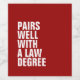 Vill du veta vad vin är bra på? En juristexamen! Fira en advokatskola studenten med roligtens vin-märke. Allt går på superskojets anpassade vin-märke! Underbar för en vängåva, dina klasskamrater och mycket mer. Den lustiga formuleringen är upp till er eller ni kan lämna det som det är att läsa "parar bra med en juridisk examen". Annan färg finns också tillgänglig