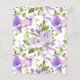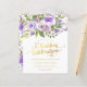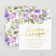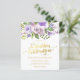 Billiga bröllopsinbjudningar med en enkel vit bakgrund, en lila blomsterdisplay i vattenfärg, en elegant titel i falskt guld och en modern bröllopsmall.