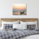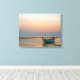 Lågdäcksbåt på båset vid solnedgång med flera stor canvastryck