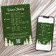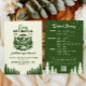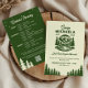 Inbjudan till camp weekend för ogifta med resplan på baksidan är en rolig och utomhusinspirerad inbjudan designad för stugsemestrar, mountain glamping, insjöutflykter eller äventyr i nationalparker. Framsidan visar en retroillustration av en campingmärke med berg, tallar och en flod i skogsgrön färg på varmt krämfärgad bakgrund, med redigerbara linjer för den blivande brudens campnamn, etableringsår, datum för helgen, plats och den lekfulla tagline “Sista vandringen före slöjan”. Baksidan tillhandahåller en färdig att anpassa resplan som organiserar planen för fredag till söndag i en tydlig schema, plus flexibelt utrymme för kostnadsnoteringar, betalnings- eller kontaktuppgifter och en skannbar QR-kod som kan länka till Venmo eller Cash App, gåvoregister, boendeinformation eller valfri webblänk. Stiliserad i en modern-vintage campestil, passar denna inbjudan både till lågmälda vildmarksutflykter och högenergiska äventyrshelger, och koordinerar enkelt med matchande skyltar, presenter och dekorationer. Använd den för att skapa tonen för en helg med vandring, kajakpadling, camping, vinturer eller båtdagar, och för att hålla gästerna på samma sida före resan. Ren typografi gör det lätt att läsa
