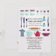 En moderiktig inbjudan till ett lagrar kökmöhippan som presenterar exponeringsglas, utensils, kavlen och mycket mer. Kortet är lätt att skräddarsy med ditt uttrycka, stilsorten, stilsortsfärg, formar papper alternativ och primat av sex pappra typer.