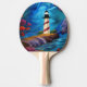 Vackert, rött och vitt, randigt fyr på en klippande yta omgiven av blommor och blå vatten/himlar AI Art skapat med minx267