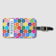 Flerfärgade picklebollar på vit bakgrund. Perfekt som en gåva till pickleball-spelare. Bagagetag med pickleball-motiv med det anpassade namnet Lycklig med /use och bäst önskemål för dina framtida spel!