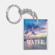 Bara. Lägg till. Vatten. är en vacker strand med tropiskt solnedfall och varm sand på mina tår. Den här designen har en nyckelkedja med en vacker sandstrand och texten "Just just. Lägg till. Vatten."