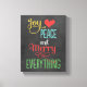 Färgfull och modern anpassningsbar helgdag canvas-konst har formen av frasen "Joy, Kärlek, Peace and Merry All" i fet färg och modern text på svart stil-krita.