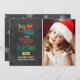 Hälsning med det enkla och snyggt julfotokortet innehåller frasen "Joy, Kärlek, Peace and Merry All" i fet färg och modern text på en svart bakgrund från stil. White snöflingor klär sig på baksidan av kortet. Anpassa med ditt foto (porträtt-format) och med anpassningsbar. Grått-/mjuk svart bakgrund med gyllene gult, tangerinrött / orange, turkosblått, grönt och vitt färg.