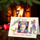 Dags för en förhistorisk psykedelisk jul med dessa vackra dinosaurier i Santa Hats och "Santa's Little Helper" Julafton citerar med ett barns namn och foto för att anpassa detta färgstarka kort. Se till att du inte är i den stygga kategorin, annars kommer de skrämmande dinoserna att vara efter dig. T Rex, velociraptor och pterodactyl festive dinosaur humor med söta julhattar är det perfekt sättet att föra roligt och skratt till din familj och dina vänner. Originalteckning skapat av konstnären Catherine Sweetman