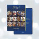 Skapa en speciell fotodagbok för hela året. Välj dina favoritfoton eller mest älskade minnen för detta 12 månaders fotojulkort. Det blå gratulationskortet kan vara en julskatt för jul och nyår. Blå och gyllene färger. Anpassa texten och lägg till dina foton. Det gör också en bra presentidé. Överraska vänner och familj med en sammanfattning av året. Använd mallen för att skapa ditt eget julkort med foton, "Vårt välsignade år".