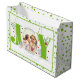 Lägg till dina foton, lime green JOY och polka dots Large Gift Bag. Ett foto av Photography © Storytree Studios, Stanford, CA