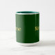 Lägg till Namn Grönt Combo Mugg Det här är en grönt kombinationstext mugg med ord Namn i guld på båda sidor. Du kan ändra namn genom att klicka på knappen Anpassa. Skriv sedan in ett nytt namn för mugg. Lustigt, unikt, söt eller personligt, det är ditt val för perfekten kaffe mugg. Utsidan av mugg har en ljusvit bas för foto, logotyp, mönster eller ordspråk, medan fälgen och handtaget är glasigt i rik färg. Matcha eller komplettera färg i din befintliga mataruppsättning, eller ge din vän ett mugg i hans eller hennes favoritprogram färg. Mugg finns i storlekarna 11 eller 15 uns. Måtten är 11 uns: 3,2 tum D x 3,8 tum H och 15 uns: 3,4 tum D x 4,5 tum H. mugg är mikrovåg och diskmaskin säker. Mugg är tillverkat av en stark keramik. Mugg uppfyller FDA-kraven för livsmedels- och dryckessäkerhet. Mugg trycks på begäran i Reno, NV.