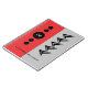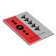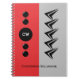 Bärbar Office spiral-dator. Lägg till initialer och namn. Röd och grått, med pilformer.
