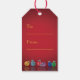 God jul illustration med en fantastisk kalender och färgstarka julbalkar på röd bakgrund.