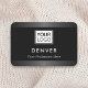 Modern namn bricka med din första logotyp namn, rubrik och anpassningsbar på en svart bakgrund med mörk grått gradient gräns. Du kan byta typsnitt, flytta och ändra storlek på logotypen och andra inslag med verktyg som designläge.