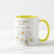 Den här lätta och delikata designen har en mängd daisy. Det står "lägg till något Bra i dag". Utformningen finns på båda sidor om mugg.