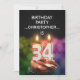 Lägg till en namn för att anpassa den här unika partiinbjudan.En roligt 34 födelsedagsfest inbjudan med lycklig-ljusnummer som brinner på en chokladkaka. Se hela raden av inbjudningar och kort i min butik.