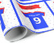 Den röda och blå t-tröjan på den här inslagna pappra har ett stort vita nummer 9, och du kan anpassa den genom att lägga till födelsedagsljudets namn. Utformningen har också en fet "Grattis på födelsedagen"-banderoll. Matchande födelsedagskort är också tillgängliga.