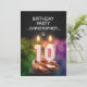 Lägg till ett namn för att anpassa den här unika partiinbjudan.En roligt 10:e födelsedagsfest inbjudan med lycklig-ljus som brinner på en chokladkaka. Se hela raden av inbjudningar och kort i min butik.