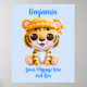 En underbar baby tiger med hatt på blå affisch för ett barns rum. -