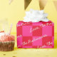 Starta presenten ge av höger med personligens kontrollpanel för trendig av roligt mönster i rött och rosa presentfigursättning papper. Anpassa med namnteckning namn. Beställ matchande presentationer för en vacker presentation. märkre för en vacker presentation. En del av en samling. Ursprunglig utformning av Marisu Valencia.