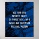 Bakgrunden är täckt av en bild som simulerar svart marmor med genomskinliga blanksteg som låter färg gå igenom! Ändra designens bakgrund till valfritt färg som du vill ha för en unik effekt. Över struktur lades en mall fält till för din text. Använda det här utrymmet om du vill lägga till ditt favoritcitat eller din favoritkänsla. Det kanske är roligt. Du kanske behöver en poster som motiverar dig. Spelar ingen roll ditt skäl, gör den här designen till din egen. Alla lagrar lades till separat och lämnades olåsta till ge för att få maximal designkontroll! Förutom färg kan teckensnittet ändras om du vill. Om du vill ha ett något annorlunda utseende klickar du på länken för att anpassa och flytta markören lagrar runt, rotera eller förstora den eller drar den till ett annat läge.