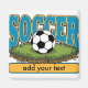 En fotbollsspelare sätter redot på gräset med stor blå SOCCER-text som skisseras i gult! Lägg till anpassningsbarna under den här ikondesignen i det utrymme som finns. Perfekt för alla fotbollsspelare eller fotbollsspelare fläkt, lägg till namn, namn eller idrottsmeddelande! Anpassade Fotbollskjortor och fotbollskjortor!