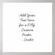 Med en vanlig vit bakgrund lades en mall fält till för texten. Jag har använt ett populärt kursivt skript här. Använda det här utrymmet om du vill lägga till ditt favoritcitat eller din favoritkänsla. Det kanske är roligt. Du kanske behöver en poster som motiverar dig. Spelar ingen roll ditt skäl, gör den här designen till din egen. Teckensnittet kan ändras om du vill. Andra versioner är tillgängliga i min butik med en mängd olika texturerade bakgrunder om du skulle föredra något lite annorlunda. Annars kan du ändra färg - text eller bakgrund - eller lägga till en egen bild i bakgrunden om du vill!