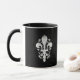 Den Fleur de lis designen som inspireras av järnarbete som finnas i staden av New Orleans, denna mugg presenterar också, Mardi Gras färgadbrytningar på en sida, och roliga New Orleans formulerar.