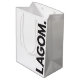 Den här presentsäcken finns i många produkter och visningar ord LAGOM. Lagom (uttalad [lɑ̀ ː ɡ om]) är ett svenskt ord, vilket betyder "endast högernas belopp". Lagom kan tillämpas på alla situationer, från mat och dryck till upphovsrätt och koldioxidutsläpp.