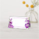 Lagrar blommor i lila bröllop i kvällstid placeringskort