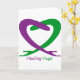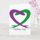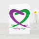 Lättande hakar med lila och grönt ord.