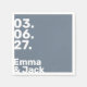 Med fet lodrät, vit datumdesign som ställs in mot en plan ljusblå bakgrund. Ren typografi av contemporaryn framträder i en redaktionellt inspirerad layout, som skapar en unik och minnesvärd accent för firande. Den minimalistiska estetiken, med sin skarpa linjer och oklanderliga sammansättning, koordinerar sömlöst med matchande inbjudningar och OSA kort - skapar den perfekt för det moderna chic bröllop. Perfekt för par som uppskattar sofistikerad enkelhet och trendigets blocktextformatering.