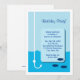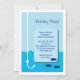 Inbjudningskort för lågvattenfiske har en fiskeledning och krok i blått hav vatten med tre fiskar som simmar mot det. Perfekt för en födelsedagsfest eller något annat tillfälle. Anpassa med egen text. © Morgon 6