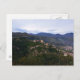 Visa den gamla byn och Longobard-fästningen vid Laino Castello i Kalabrien. Fotografi från ett angränsande backe. Grottor under höftbebyggelsen bebos av bysantinska munk.