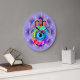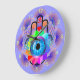 En Hamsa med att läka och skyddande bildspråk: blåttögaskydd mot "ont öga", OM-symboler, en hjärta, vingar och energi röra sig i spiral
