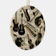 Den här roligten är ett tema för musikalisk design som innehåller en mängd olika musikinstrument på en vintage lakan musik, samlingsplats och bakgrund. Paletten trendig Black och guld färg gör en öga-fångande prydnadssak, särskilt för musiker eller musiklärare. De instrument som används är akustiskt och elektriskt gitarr, saxofon, klarinet, trombensen, trumpet, Fransk horn, flute, violin, cello och trummor. Lägg till ditt namn eller annan text för att anpassa. Sök i ID481 om du vill se andra alternativ och produkter för färg med det här mönstren.