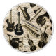 Den här roligten är ett tema för musikalisk design som innehåller en mängd olika musikinstrument på en vintage lakan musik, samlingsplats och bakgrund. Paletten trendig svart och guld färg gör att en låda som fångar öga dras. De instrument som används är akustiskt och elektriskt gitarr, saxofon, klarinet, trombensen, trumpet, Fransk horn, flute, violin, cello och trummor. Sök i ID481 om du vill se andra alternativ och produkter för färg med det här mönstren.