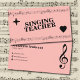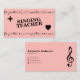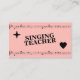 Ett enkelt affärskort med rosa bakgrund, musik lakan, en stjärna och ett hjärta. Baksidan innehåller fullständig kontaktinformation om anpassadet och en trefaldig illustration. Perfekt för musikinlärning, sånglärare, voaltränare, musiker osv.