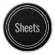 Den här svarta knoppen har vit visning. Du kan redigera den för att visa vad som finns i lådan eller skåpet. (Visa: Lakan) Två vita cirklar bildar gräns för texten.