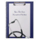 Professionell av klass för affärsändamål för medicinska ändamål: ett blått läderurklipp med blank papper och ett stetoskop. Perfekt för all verksamhet som rör hälso- och sjukvård, t.ex. ett läkarkontor, ett kontor i doktor, en klinik eller ett sjukhus. För sjukhuspersonal, läkare, sjuksköterskor; klasser, ädel och elegant.