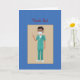 En illustration av en doktor i grönt skrubbar som håller en spruta och texten "Tack". Det här kortet skulle vara perfekt att skicka till ett doktor som du uppskattar.