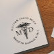 Ge din dokumentation en professionell touch med denna specialdesignade gummistämpel för läkare med kaducé-stämpeln och kraftiga initialer MD. Personlig stämpel med ditt namn, licensnummer och kontaktinformation, denna eleganta design säkerställer äkthet och igenkänning i medicinska eller kliniska miljöer. Perfekt för läkare och vårdpersonal som vill ha ett stilrent, tillförlitligt och praktiskt verktyg för daglig användning. Gör en genomtänkt och användbar present till medicinska studenter som precis har tagit examen.