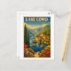 Travel poster featuring Lake Como, Italy, in a classic retro travel-poster style. Central focus on elegant lakeside villas with terraced gardens overlooking the deep blue lake, small wooden boats drifting across the calm water, and steep alpine mountains rising dramatically around the shoreline. Cypress trees and colorful Mediterranean flowers frame the foreground under warm golden Italian sunlight, creating a luxurious and romantic atmosphere of northern Italy. Rich color palette of deep sapphire lake water, lush green hills, warm terracotta villas, and golden sunlight. Clean graphic illustration with subtle vintage grain texture. Bold vintage typography headline: “LAKE COMO – ITALY’S ALPINE PARADISE”. Vertical 2:3 layout, high-resolution, print-ready.