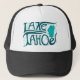 Den unika hand plockadelogotypen av "Lake Tahoe" med liten hand plockade avbildar av sjön.
